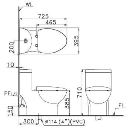 Bản vẽ kỹ thuật bệt vệ sinh Casa CD 1375