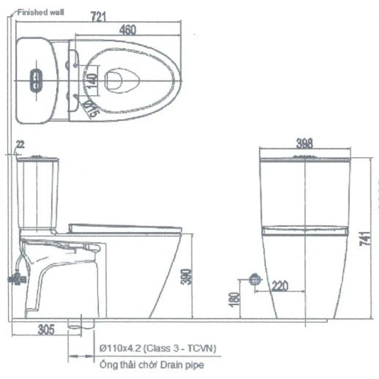 Bàn vẽ kỹ thuật Bồn cầu 1 khối INAX ACT-602 xả cảm ứng nắp rửa CW-KA22AVN