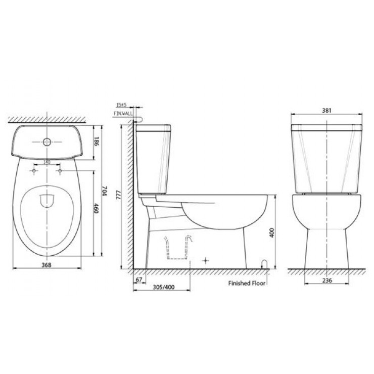 • Tâm xả: 305mm