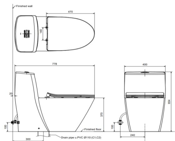 • Tên sản phẩm: Bồn cầu 1 khối nắp rửa điện tử INAX