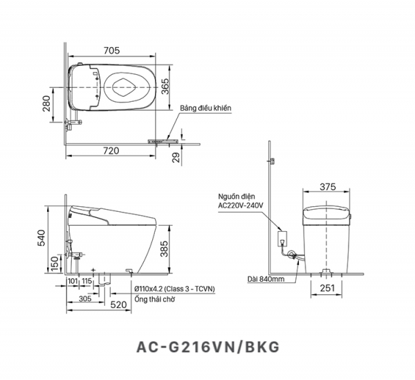 Bản vẽ kỹ thuật bồn cầu thông minh Inax ACG216 VN/BKG