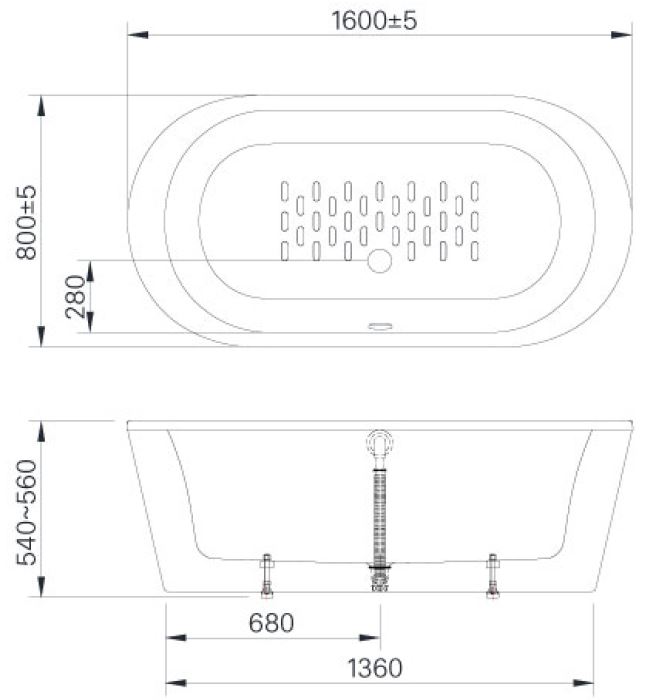Bản vẽ kích thước bồn tắm đặt sàn Inax BF-1656V