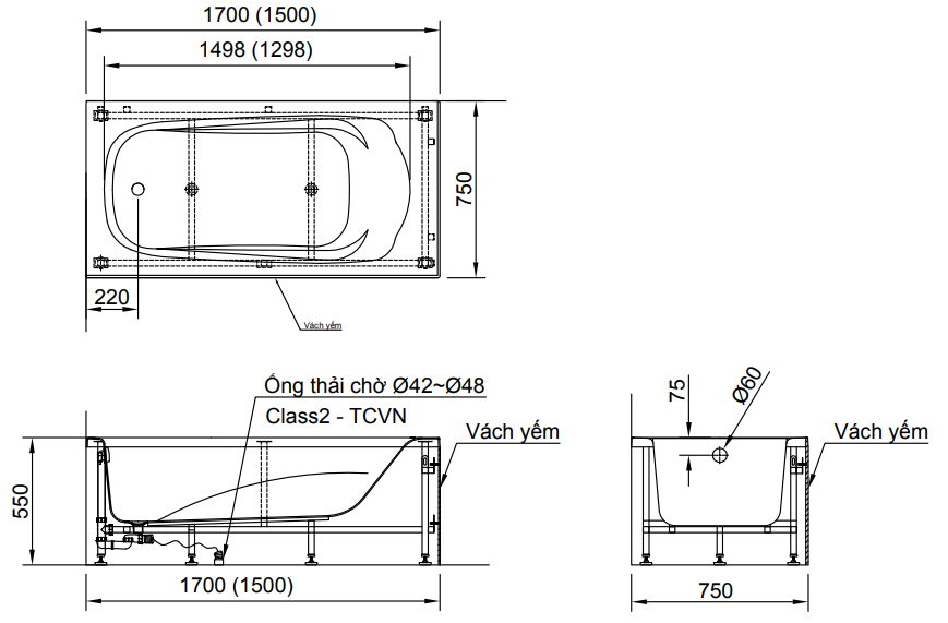 Thông tin sản phẩm Bồn tắm Inax FBV-1502