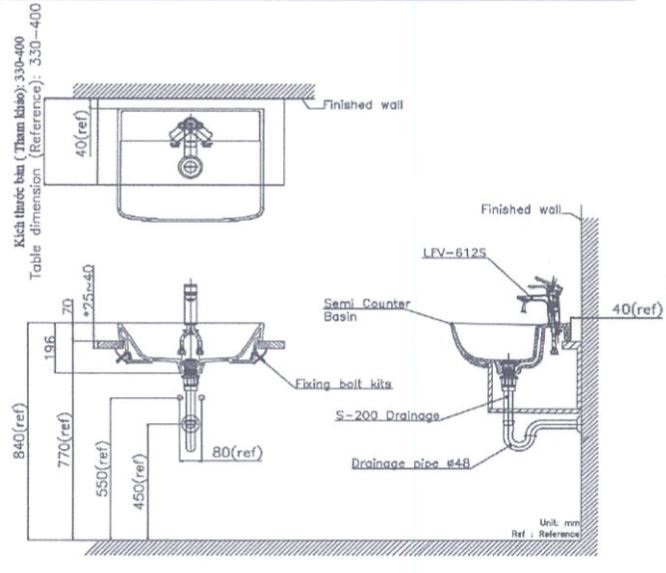 Bản vẽ kỹ thuật chậu lavabo Inax AL345V