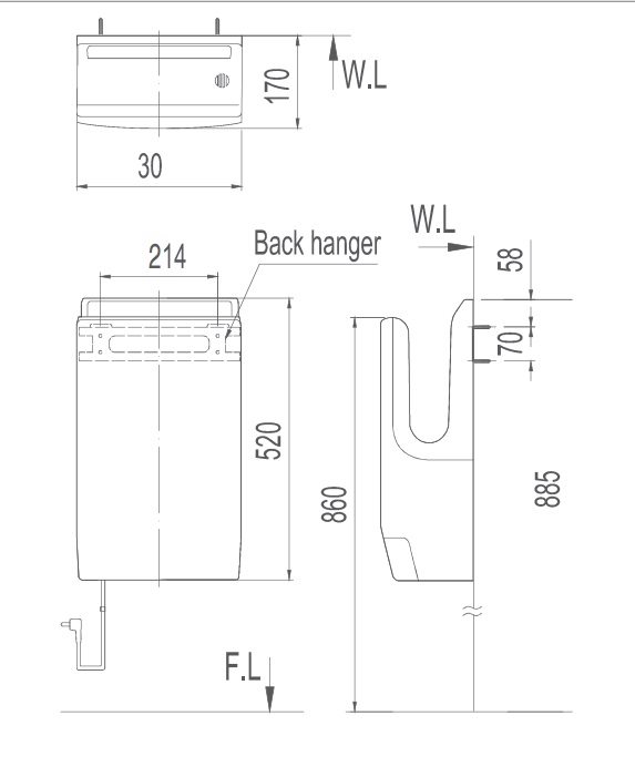 Bản vẽ kỹ thuật máy sấy khô tay Inax JT-1000