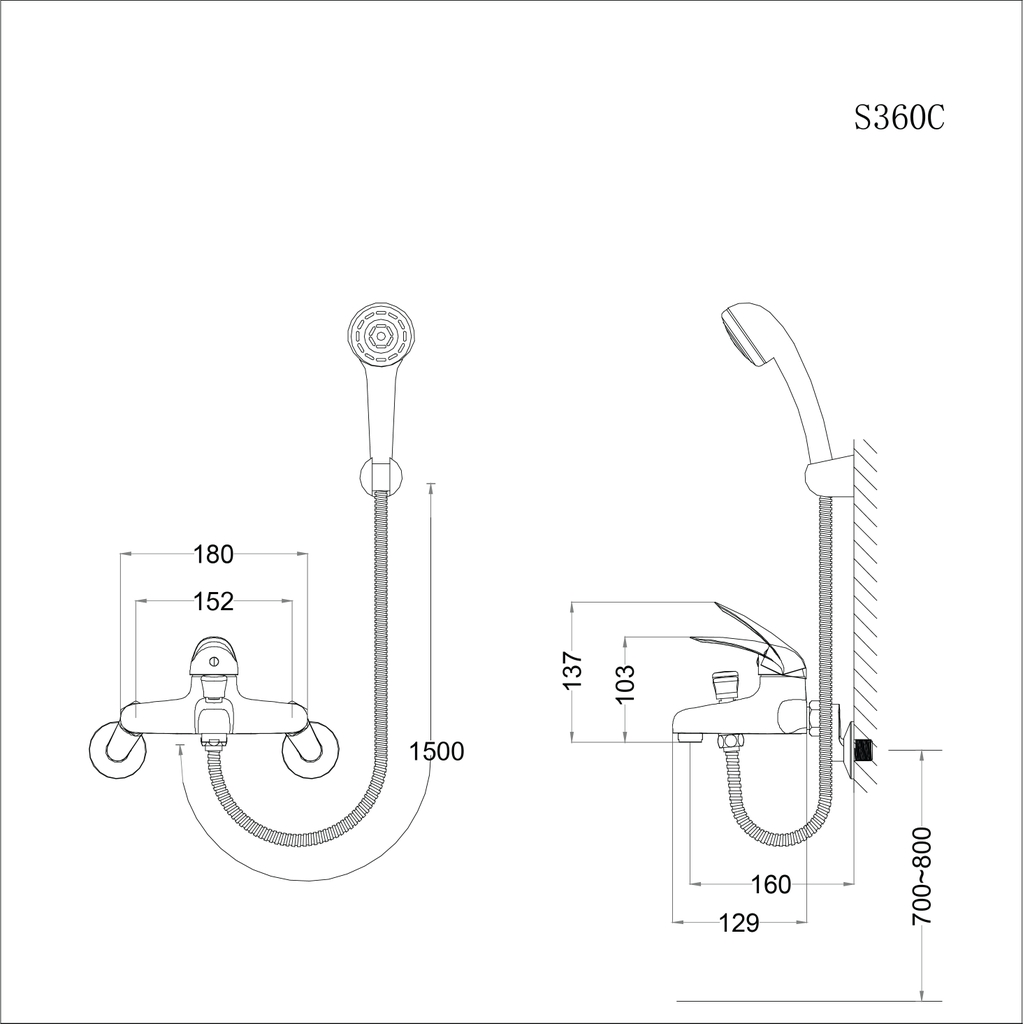 Bản vẽ kỹ thuật vòi sen tắm nóng lạnh Caesar S 360C