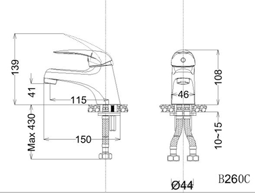 Bản vẽ kỹ thuật vòi chậu lavabo nóng lạnh Caesar B 260C